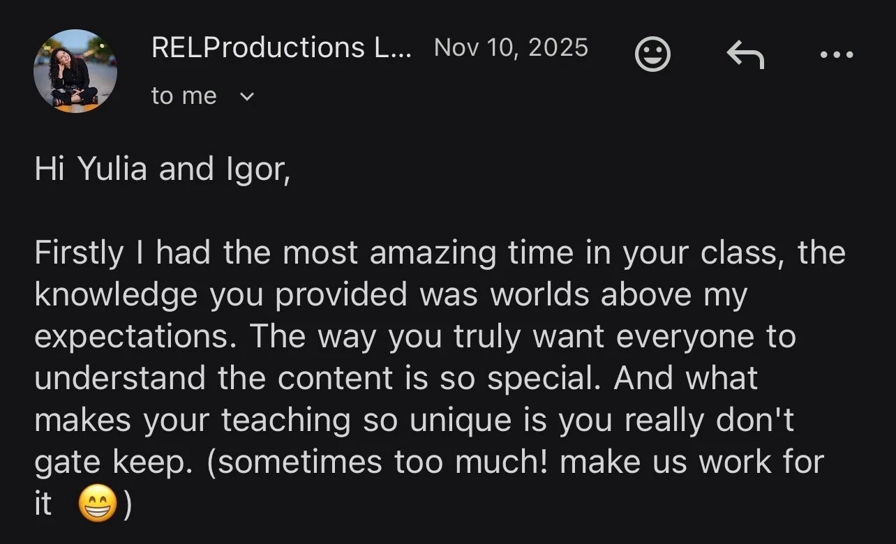 Binge our private vault of real student coaching calls—so you learn from the exact lighting mistakes others made (and fixed).